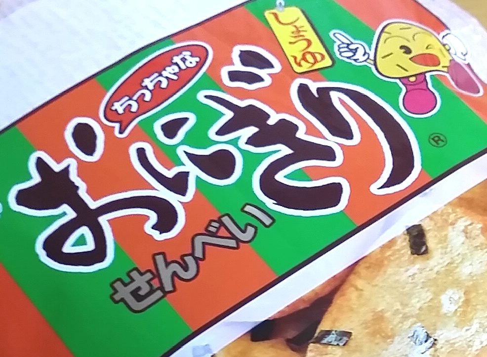 スーパーで買うと、5連のおにぎりせんべいの中身が小さくて食べやすいのですが